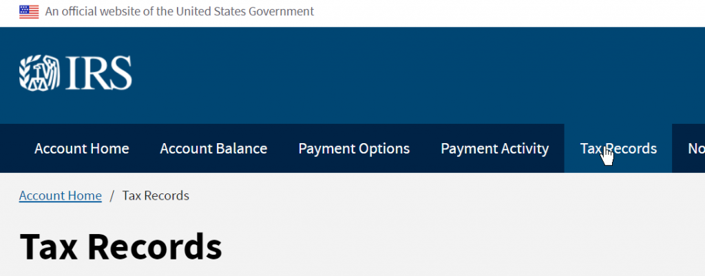 Login to the https://irs.gov, and navigate to Tax Records > 2021